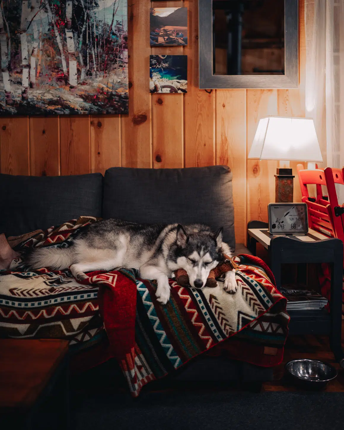 We spent hours sitting around the gas-operated fire pit in the backyard playing fetch with our Siberian Husky. Because our pup rarely gets an opportunity to be off-leash, she was loving bouncing around freely in the snow with all her toys.