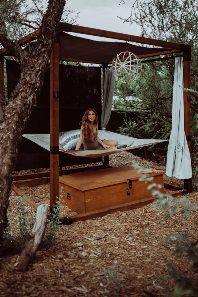 Not only are the hammocks perfect for relaxing, but the daybed is also a great place to lounge and read a book, along with the other select hanging swings throughout the property’s trees.