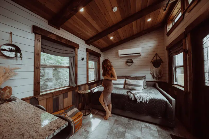 We loved vacationing in a tiny house during our Sedona visit back in 2019. Last time we stayed at the Tiny Camp’s Sedona location and our house layout had a bed in the loft area. Each unit has unique design elements throughout and are very well built and . Read about our Tiny House visit in Sedona here. Now that I’ve shared a little background about the rental options, let’s check out the property tour.