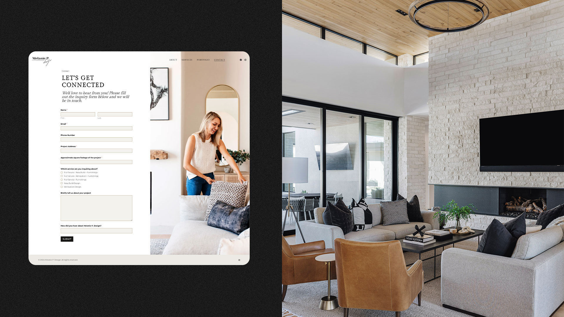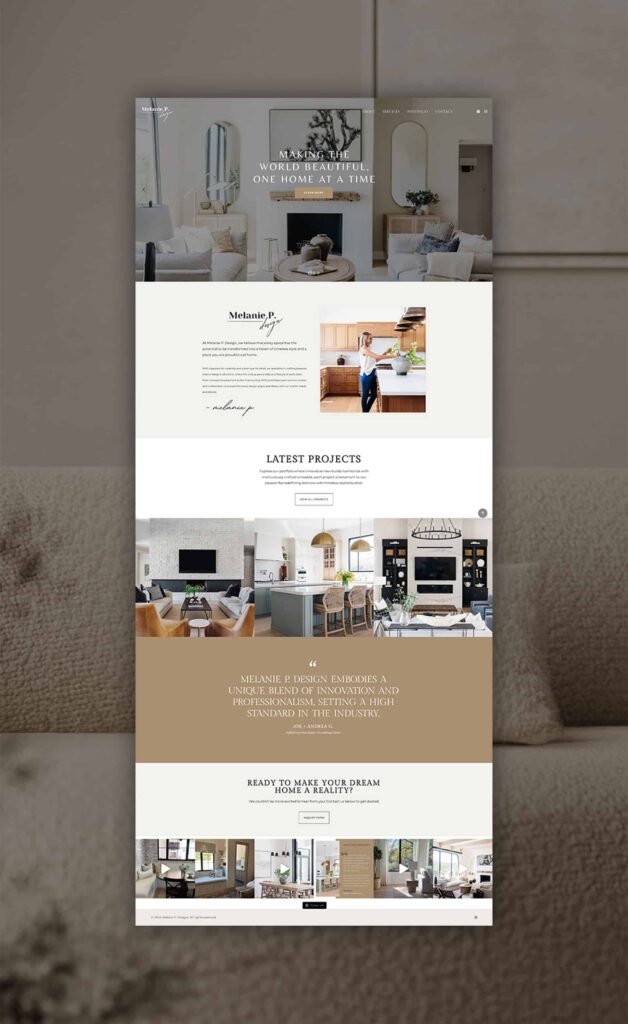 I had the privilege of designing a sleek and minimalist website for Melanie P. Design, a premier interior design studio based in Arizona. Specializing in luxury interiors, Melanie P. Design transforms spaces into timeless, stylish havens tailored to each client’s unique vision.