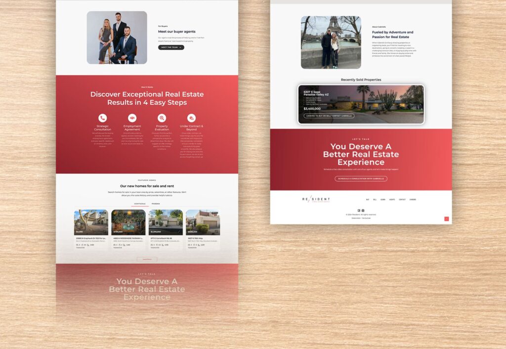Designed with a sleek, modern app-like feel, the website delivers a mobile-first experience with bold reds, blacks, and whites that make property imagery stand out. Floating elements highlight key stats and features, while interactive components—including animated hero sections, dynamic sliders, and embedded Video Ask elements—enhance engagement and lead generation.